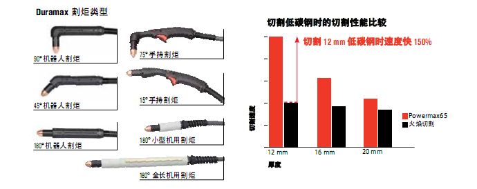 ? 切割速度快:在切割 12 mm 低碳鋼時,切割速度比火焰切割快 150%。