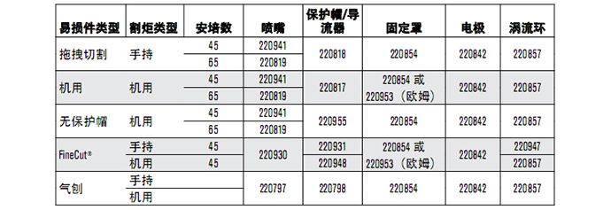 割炬易損件可提供各種數(shù)量的噴嘴和電極。有關更多信息,請聯(lián)系您的經(jīng)銷商。